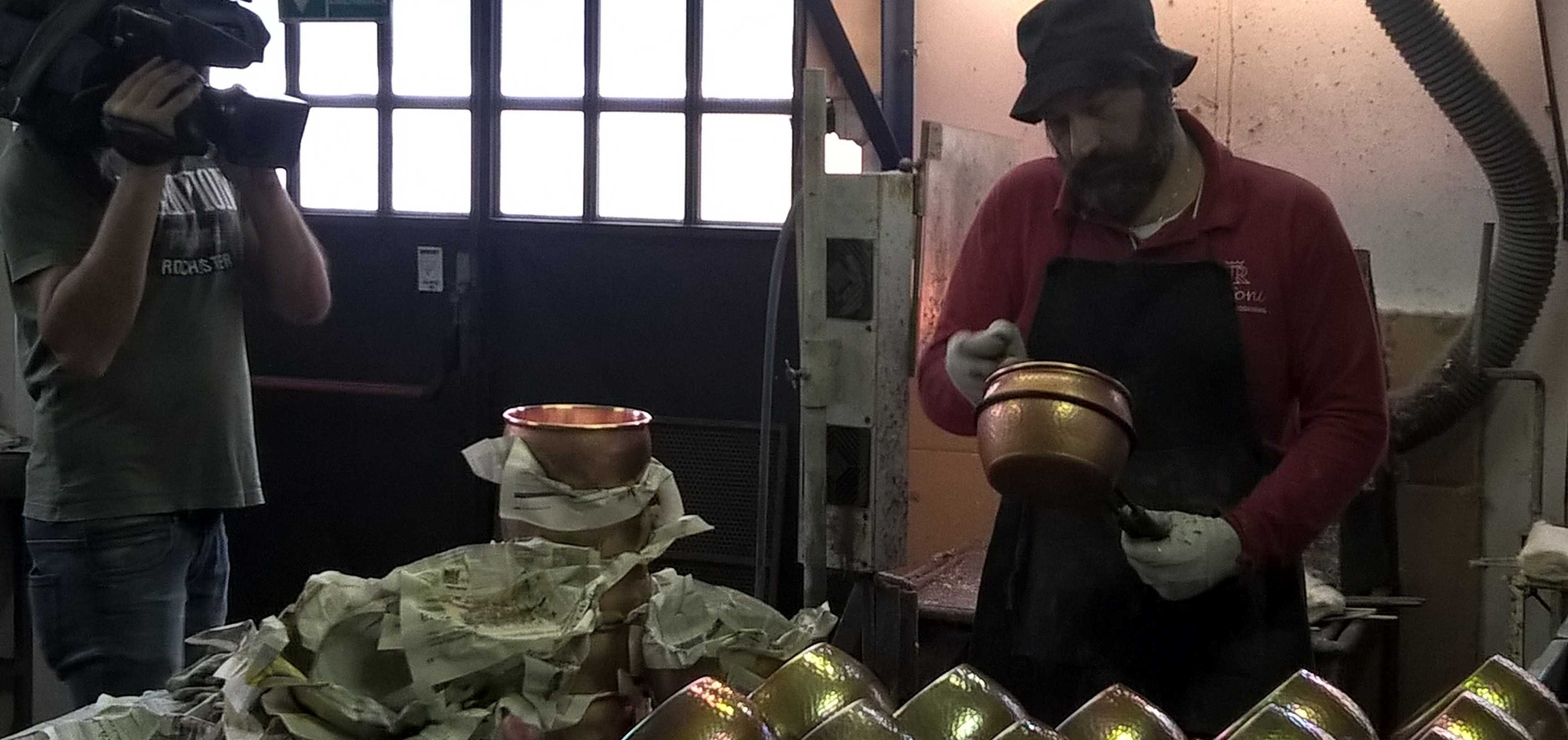 Come da programma questa mattina alle 7,30 una troupe di RAI 3 Piemonte era a Omegna, nella sede della Ruffoni, per un servizio in diretta sull’azienda, sulla sua storia e sulla sua attività produttiva. Una lunga tradizione nella produzione di pentole, raccontata da Walter Ruffoni - discendente e terza generazione nell'impresa considerando il nonno Antonio che nel 1931 realizzò la prima pentola in rame - che ancora oiggi realizza prodotti con elevati standard di qualità e soprattutto con la grande passione di chi ha saputo conservare i valori di un tempo con tecniche e materiali raffinati. Quella stessa impresa - la Ruffoni - che aveva visto nascere la prima pentola in rame è oggi un riferimento in questa nicchia di mercato, non solo nella terra dei calderai, ma per un mercato ben più ampio di esportazione nel mondo, dagli Stati Uniti alla Russia, dal medio Oriente alla Cina. Una tradizione cresciuta e affinata nel tempo che ha saputo conservare metodologie di lavoro ancora con interventi artigianali nelle diverse fasi di lavorazione, miscelando tradizione del sapere e innovazione della tecnica.
