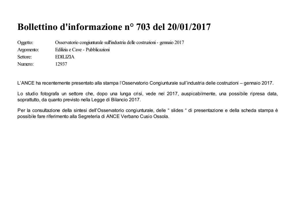 Osservatorio congiunturale sull'industria delle costruzioni - gennaio 2017