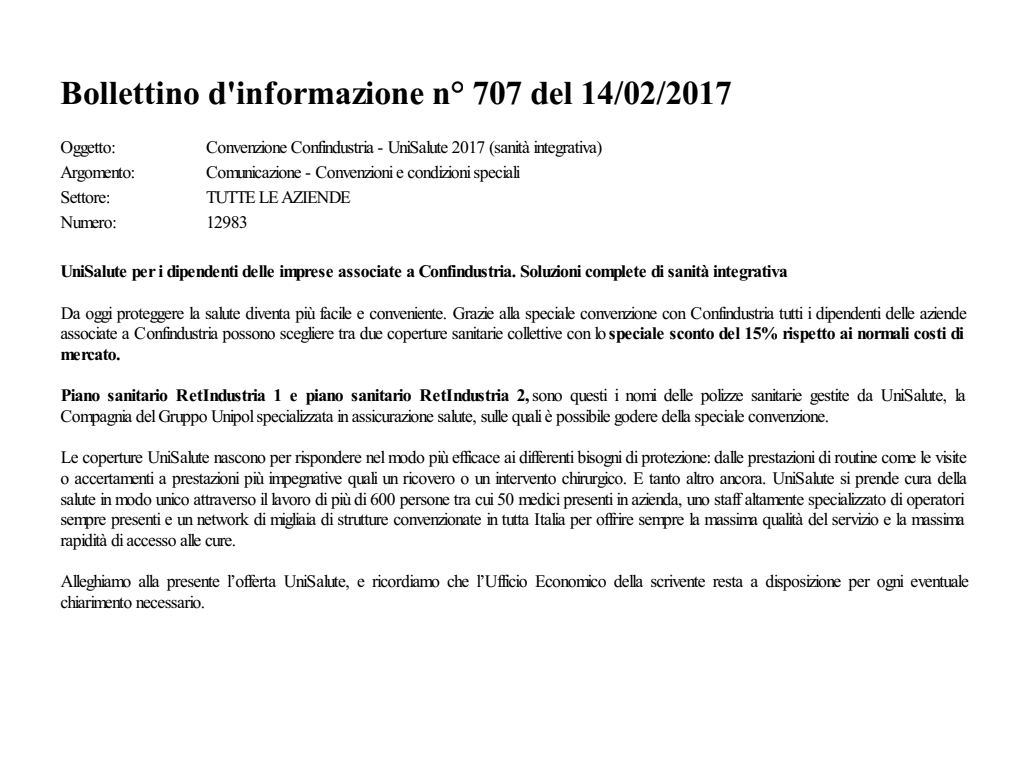 Convenzione Confindustria - UniSalute 2017 (sanità integrativa)