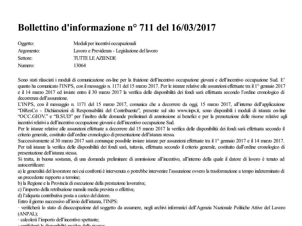 Moduli per incentivi occupazionali