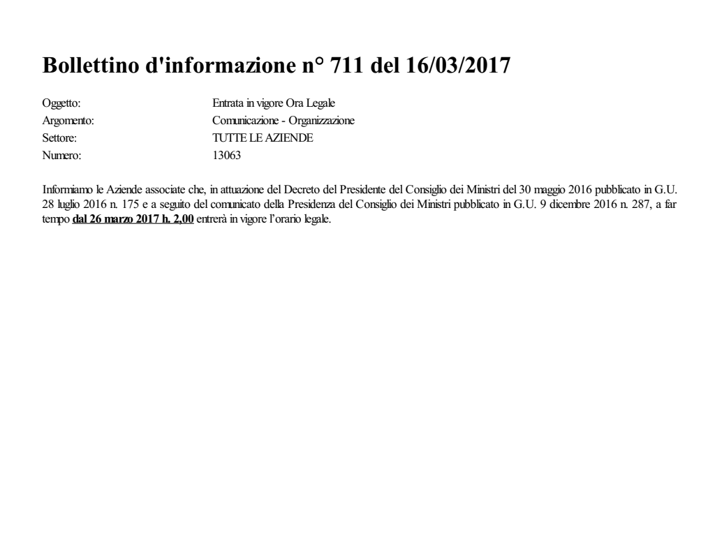 Entrata in vigore Ora Legale