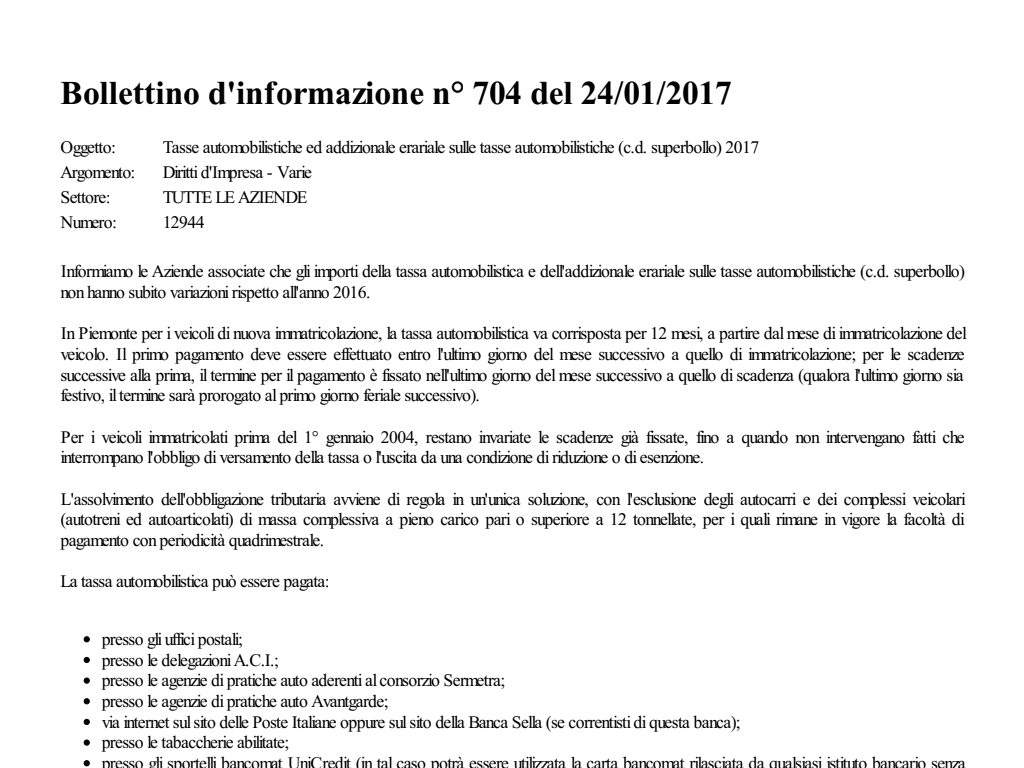 Tasse automobilistiche ed addizionale erariale sulle tasse automobilistiche (c.d. superbollo) 2017