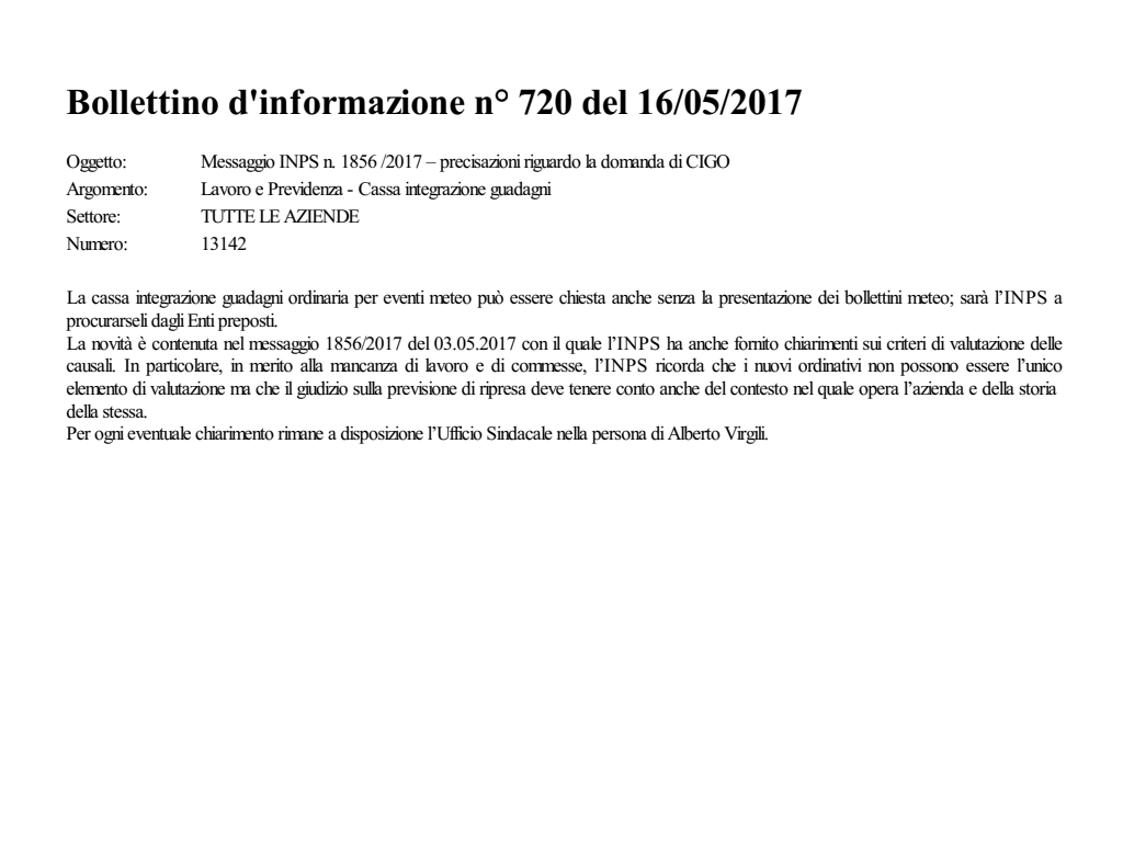 Messaggio INPS n. 1856 /2017 – precisazioni riguardo la domanda di CIGO