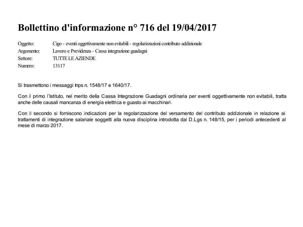 Cigo - eventi oggettivamente non evitabili - regolarizzazioni contributo addizionale