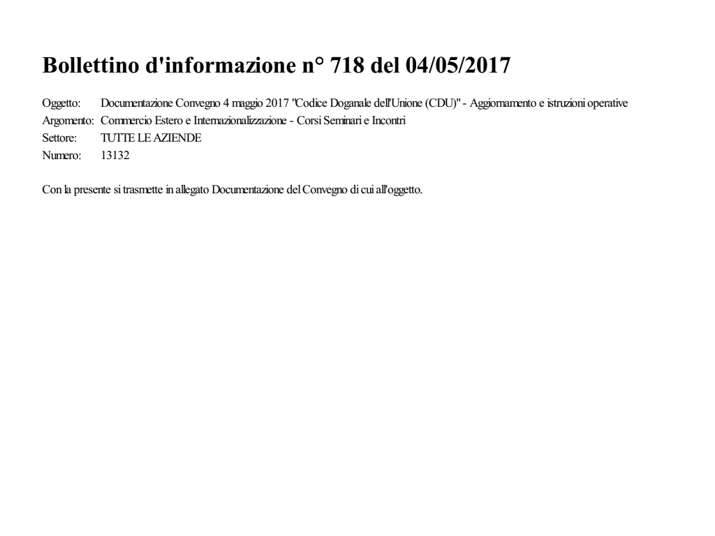 Documentazione Convegno 4 maggio 2017 "Codice Doganale dell'Unione (CDU)" - Aggiornamento e istruzioni operative