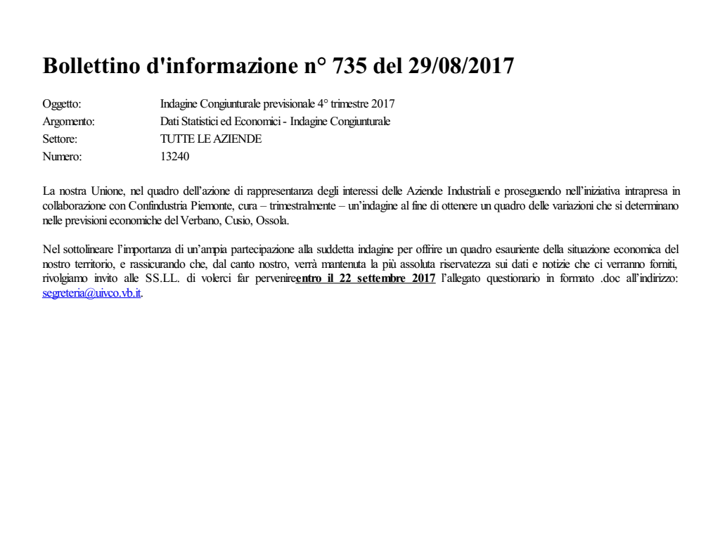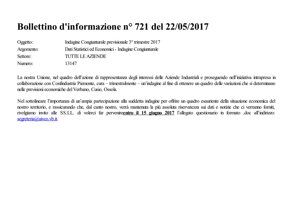 Dati Statistici ed Economici Indagine Congiunturale