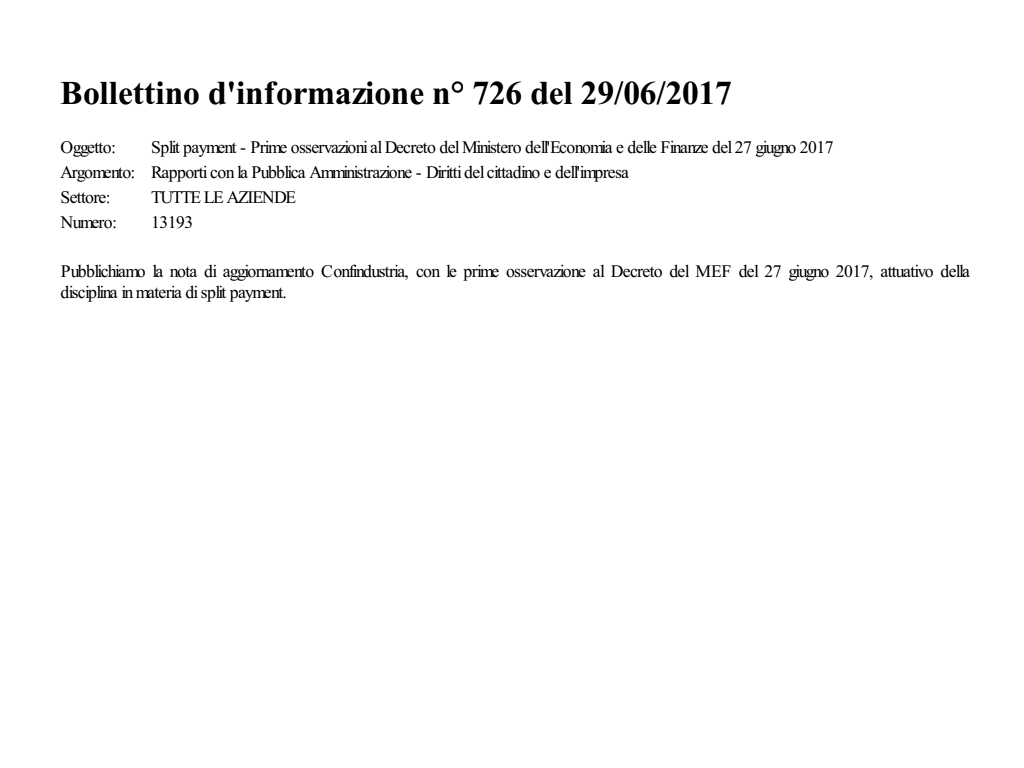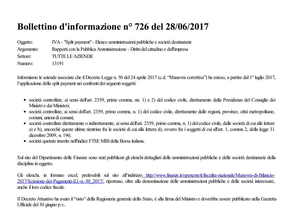 Decreto split payment 13 luglio 2017: nota di aggiornamento Confindustria