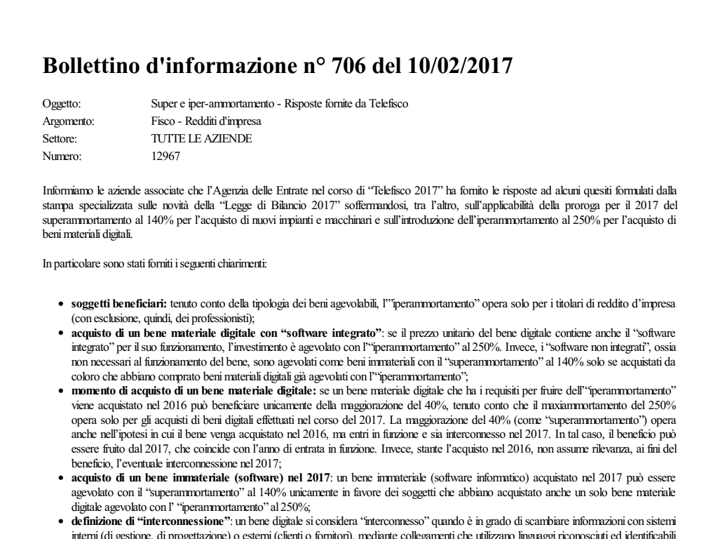 Super e iper-ammortamento - Risposte fornite da Telefisco