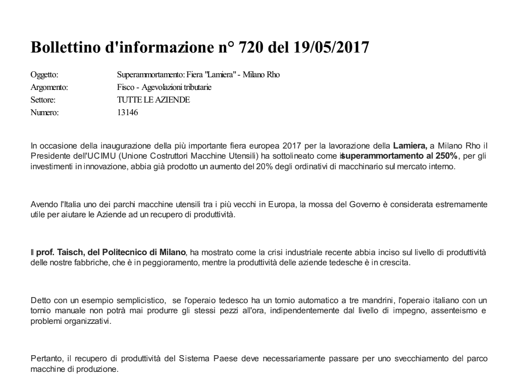 Superammortamento: Fiera "Lamiera" - Milano Rho