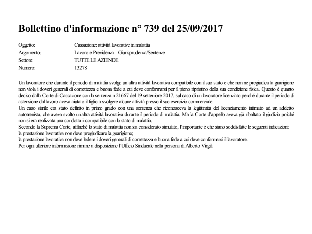 Cassazione: attività lavorative in malattia