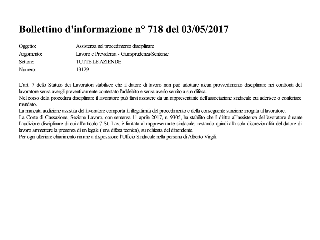 Assistenza nel procedimento disciplinare