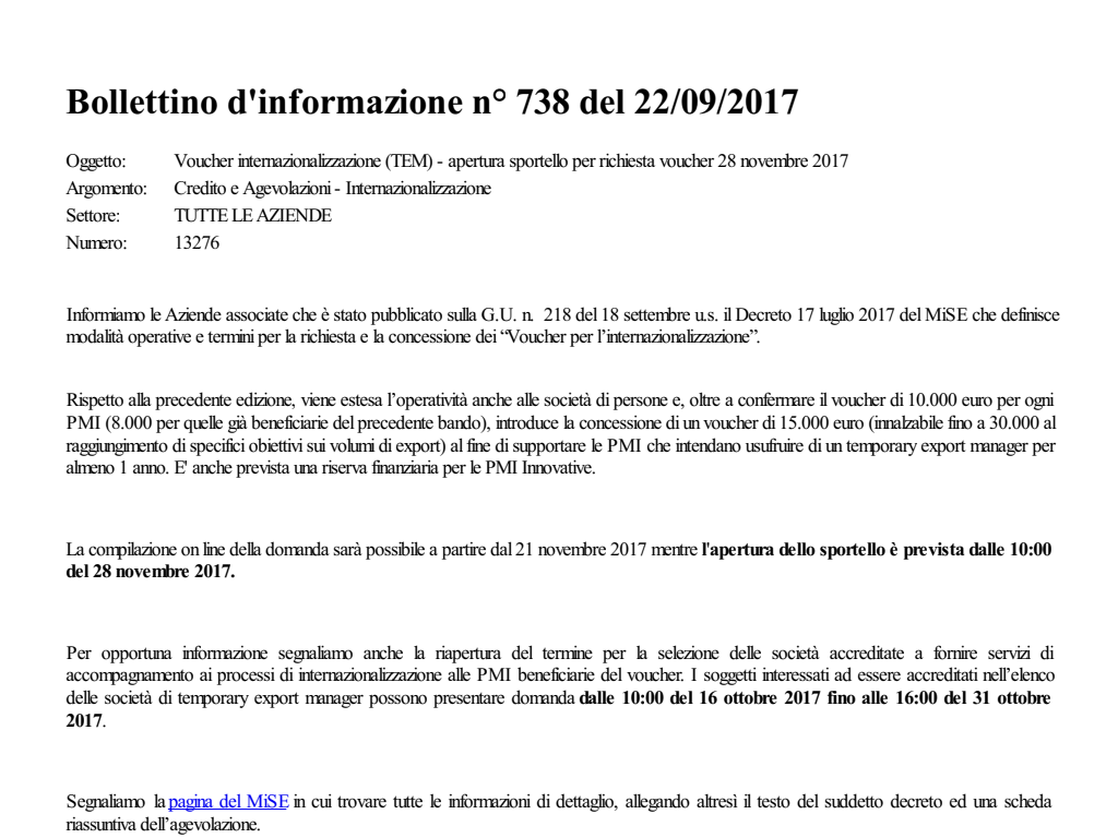 Voucher internazionalizzazione (TEM) - apertura sportello per richiesta voucher 28 novembre 2017
