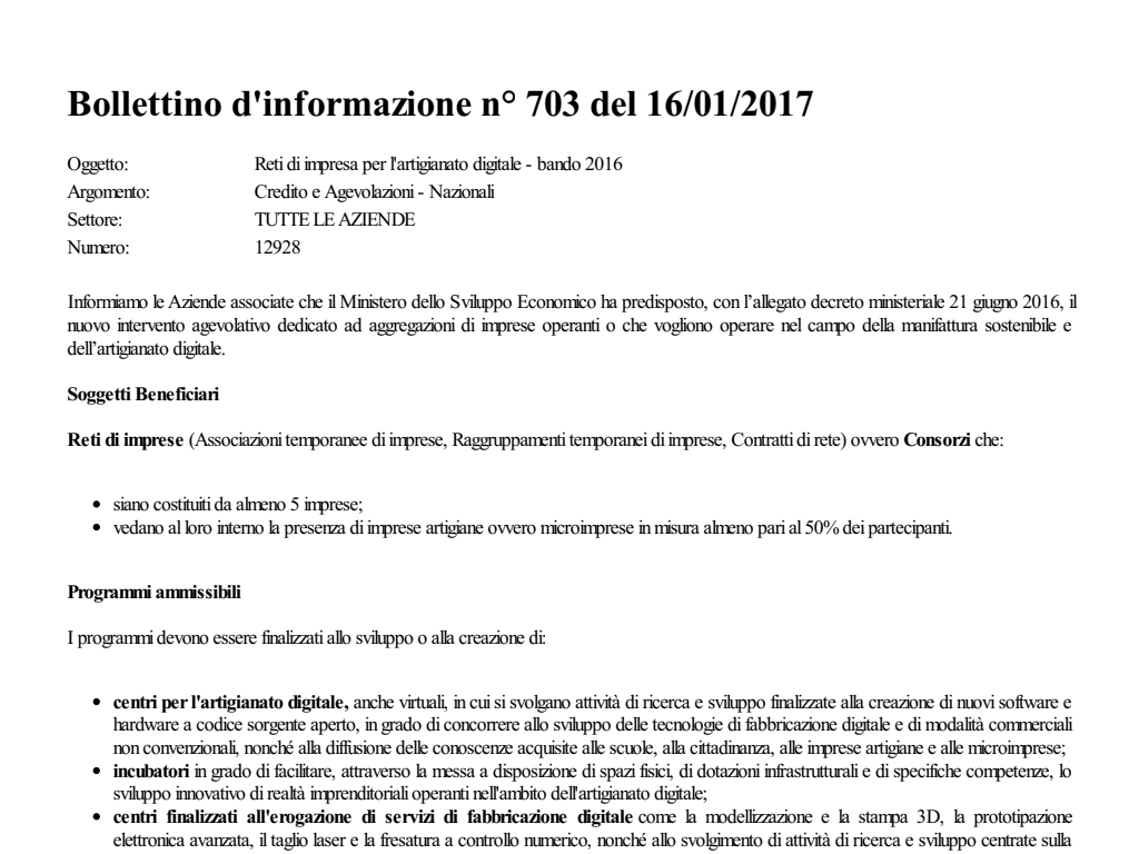 Reti di impresa per l'artigianato digitale - bando 2016