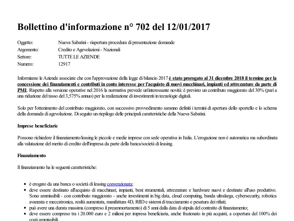 Nuova Sabatini - riapertura procedura di presentazione domande