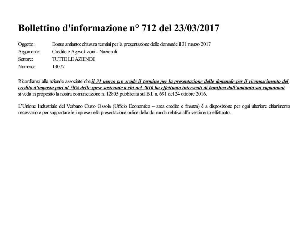 Bonus amianto: chiusura termini per la presentazione delle domande il 31 marzo 2017