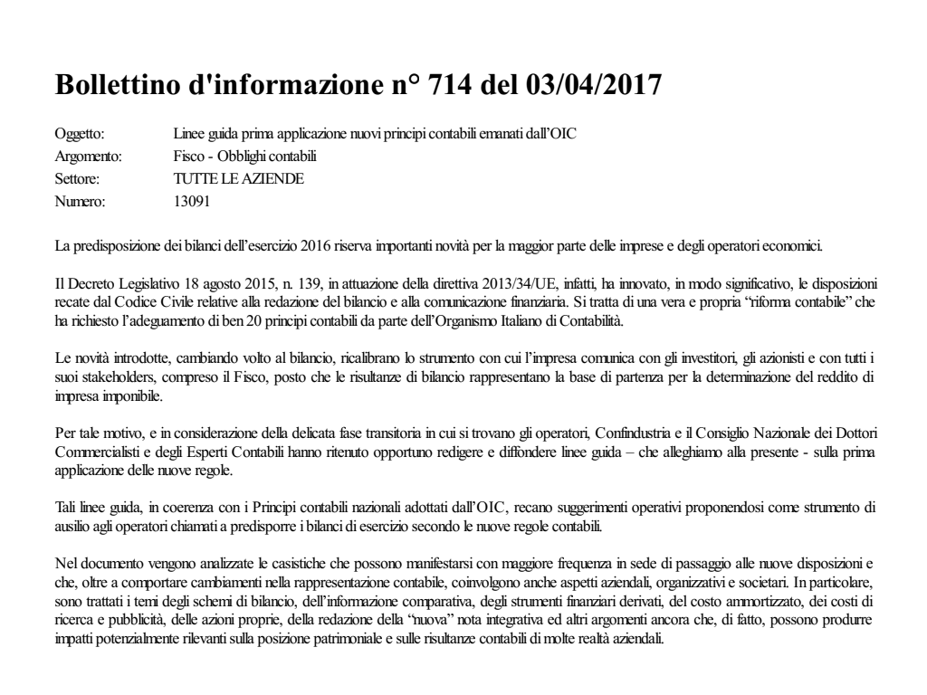 Linee guida prima applicazione nuovi principi contabili emanati dall’OIC